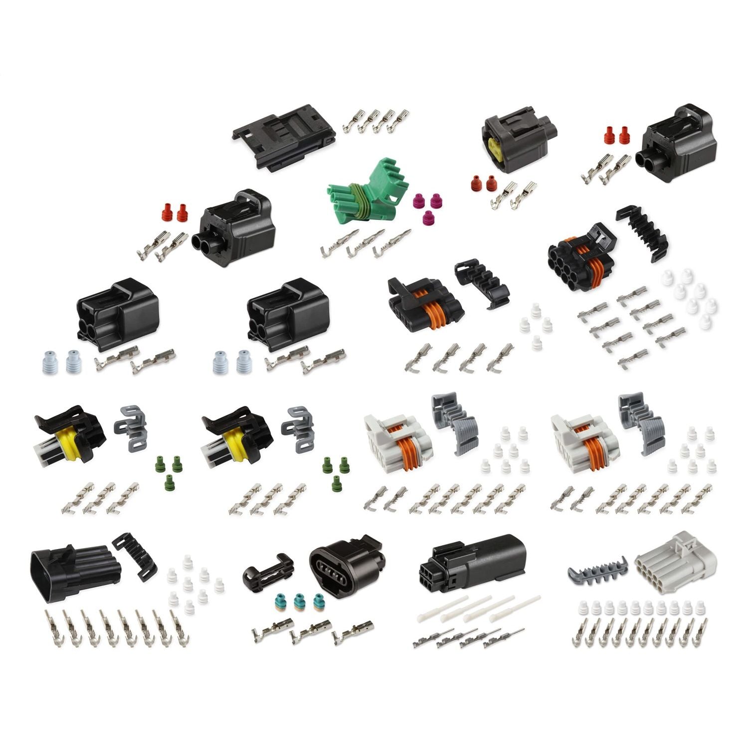 Introducing EFI Engine Connector Kits – From Holley EFI. With the latest addition to our ever-expanding Wiring Shop, our goal was to provide you with every engine connector used on the Holley EFI main harnesses. If you are building a custom engine harnesses for your ride, but you do not have the time to hassle with sorting out every connector, pin, seal and tpa, then these kits are for you! Kits are available for most common domestic V8's, such as; LS, Coyote, 2V and 4V Modular, and GEN III HEMI engines.