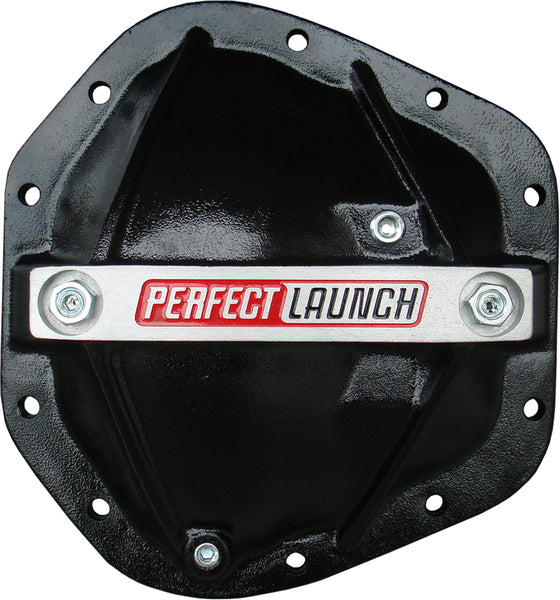 Reinforced lightweight aluminum rear end cover designed to strengthen the rear housing case in heavy torque situations. The PERFECT LAUNCH logo is prominently displayed precision milled surface. Each cover includes two bolts to stabilize bearing main caps, a fluid capacity plug, a magnetic drain plug, and mounting bolts. Exterior of the cover has a black painted finish. Sold individually.