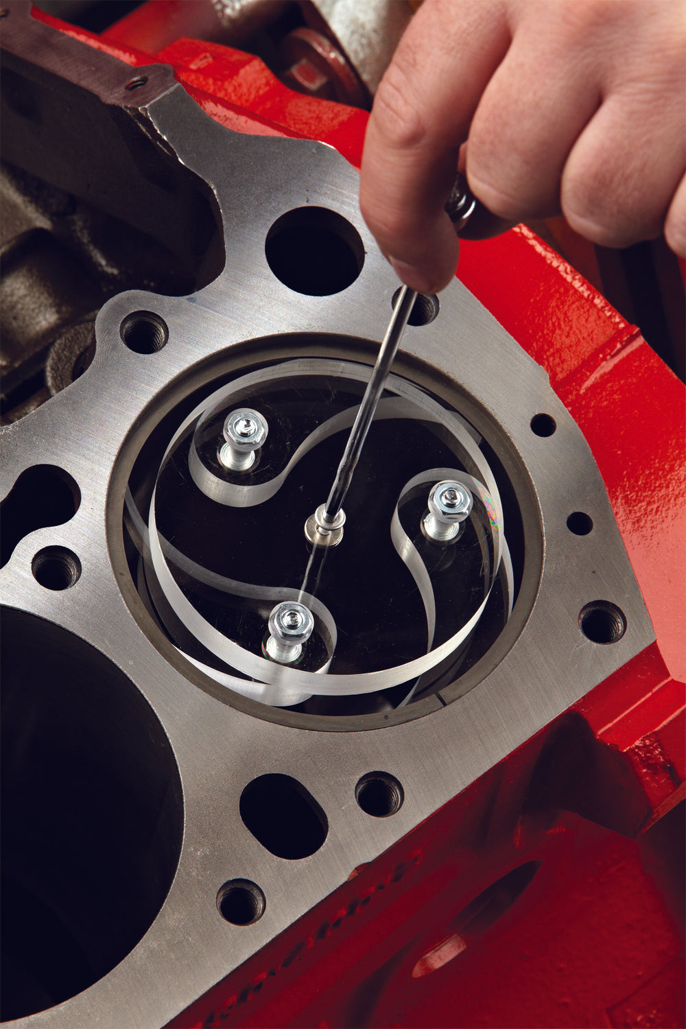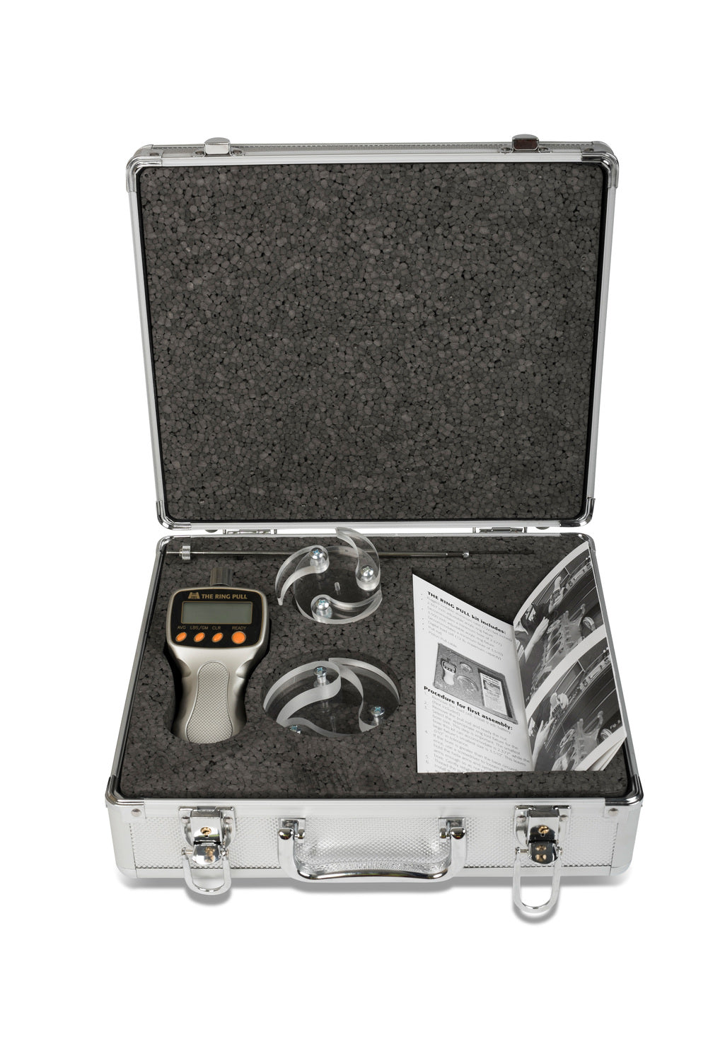 Minimizing piston ring friction before blow by is one of the best ways to maximize engine efficiency. This tool accurately measures the pull of a ring in the bore for a quantitative measurement of friction as a function of gap and diameter. Get it right and get the trophy! Includes two expandable platforms for pulling, and a precision digital gauge for accurate readings. Sold individually. U.S. Pat. 8.479.570