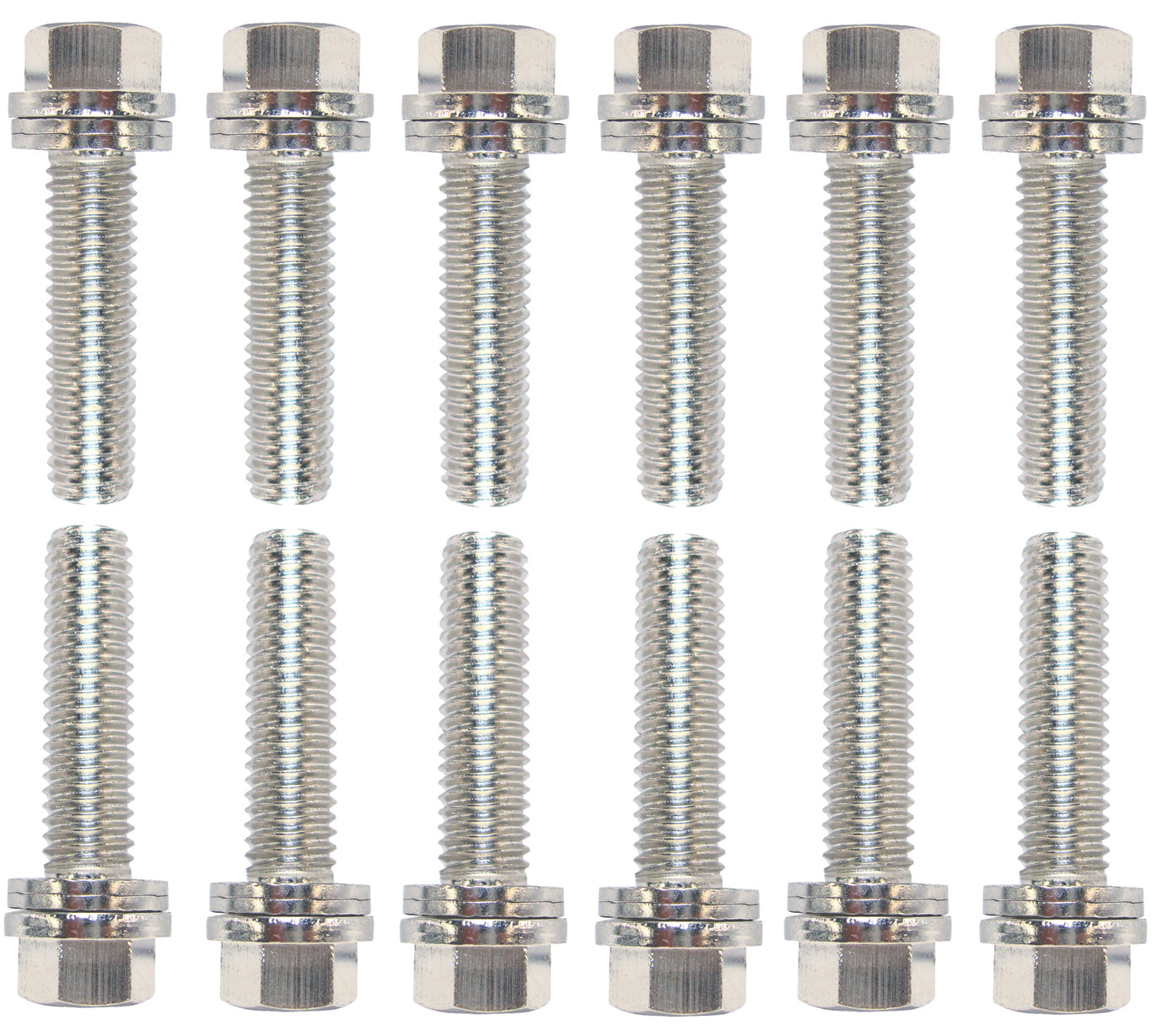 Each PROFORM Grade 8 Header Bolt is permanently assembled with a pair of special washers. When the bolt is torqued to 28+ ft-lbs, the washers super-hardened external teeth bite into and grip the bottom of the bolt head and the top surface of the header. After being self-locked in this manner, any bolt-loosening rotation is blocked by a wedge-locking action created by the washers interfacing, matching cams. Its an uphill climb: vibration that might ordinarily loosen the bolt actually increases the wedge-locking tension, securing the bolt even more. Because this simple wedge-locking method uses tension instead of friction, contact with oil actually facilitates the wedge effect. When changing headers, PROFORM Header Bolts can be untightened with a normal wrench, lubricated, and reused. Sold as a set.